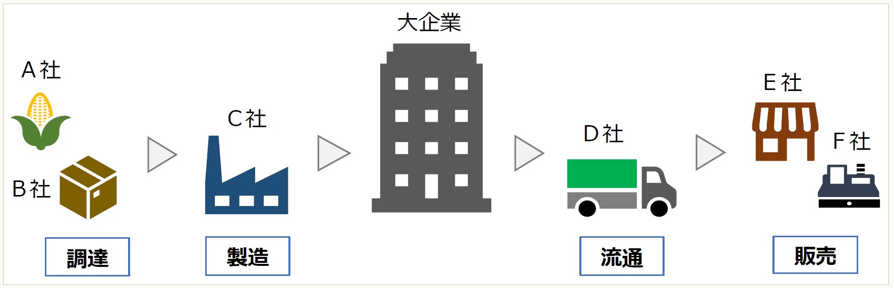 大企業は、多くの中小企業とサプライチェーンでつながっています。こうした大企業がCO2排出量を減らすには、自社内で削減するだけでなく、サプライチェーン全体での排出量を減らす必要があるのです。