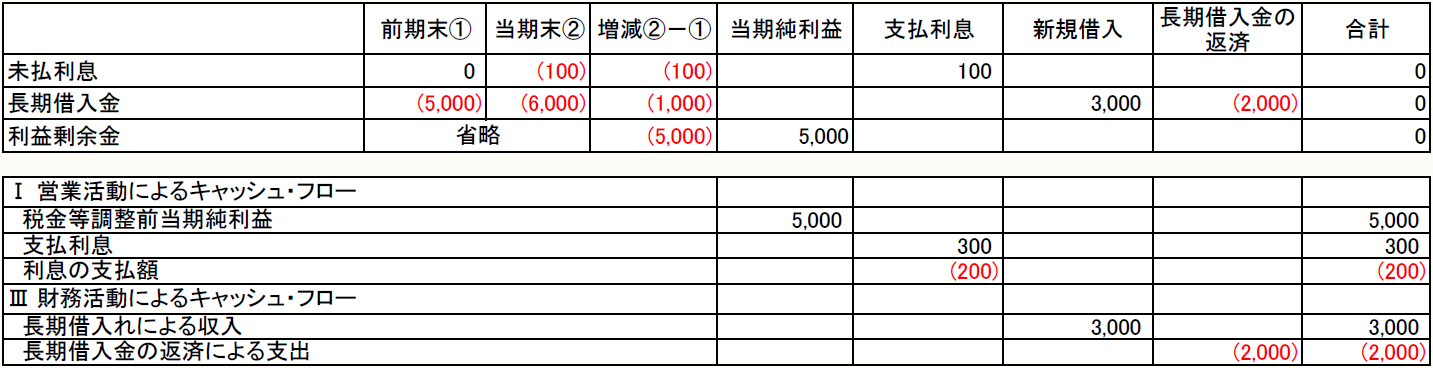 - 長期借入金・・・前期末:5,000、当期末:6,000