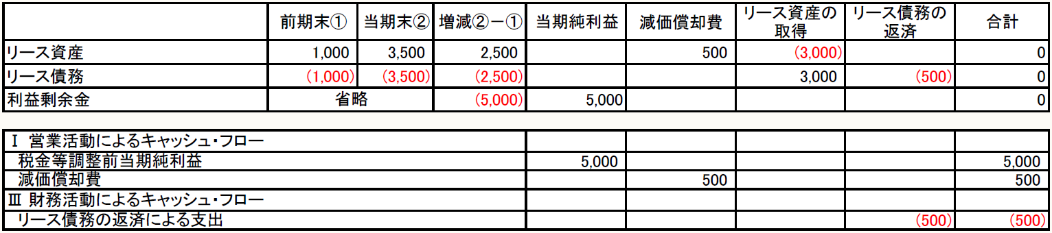 新たにリース契約を結んだ時点では、キャッシュの増減はないため、連結キャッシュ・フロー計算書上では、表示されない。