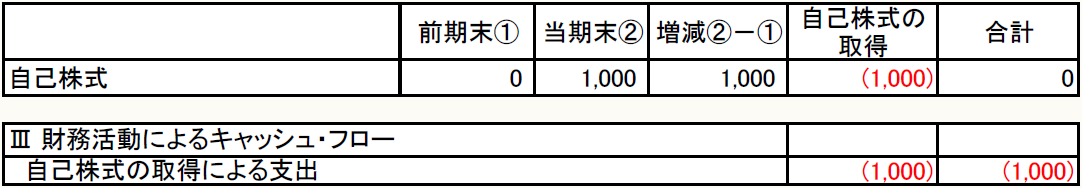 自己株式の取得によりキャッシュが減少するため、自己株式の取得による支出として表示する。
