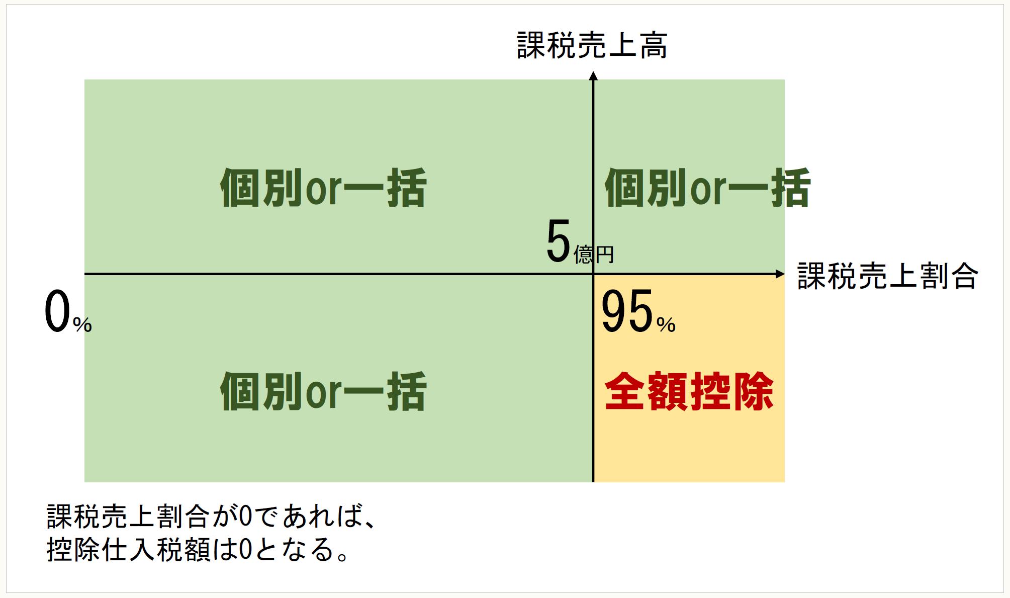 全額控除できる要件は、課税売上高5億円以下かつ課税売上割合95%以上である(下図参照)。