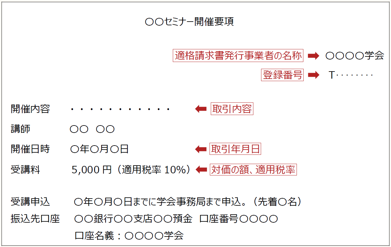 〈適格簡易請求書の記載事項を記載した開催要項(ホームページに公開)〉