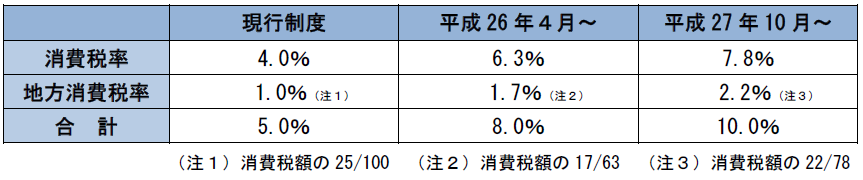 平成24年8月に「社会保障の安定財源の確保等を図る税制の抜本的な改革を行うための消費税法等の一部を改正する等の法律案」が国会で可決され、消費税法の改正として、消費税率(消費税及び地方消費税)が引き上げられることとなった。
