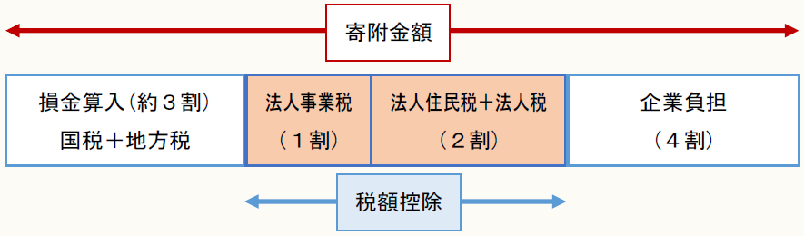 その結果、寄附した金額の実効税率相当額(約3割)の、法人税、法人事業税、法人住民税の税額軽減効果を得ることができる。