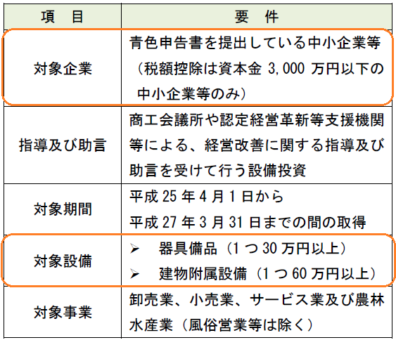 本制度の対象となるのは、青色申告書を提出している「中小企業者等」であるが、その具体的内容は次のとおりである(措法42の12の3①②、42の4⑥、42の4⑫五、措令27の4⑩、27の12の3②)。