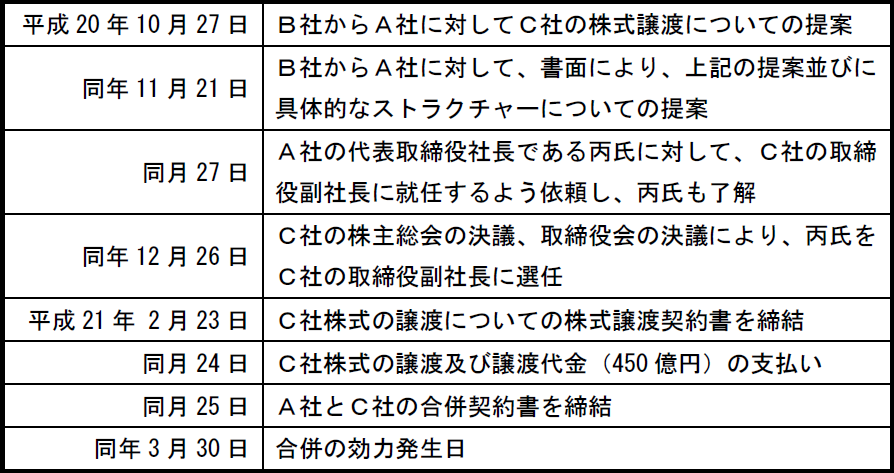 - 本件合併当時、丙氏は、A社の代表取締役でもあるが、B社の取締役でもあった。