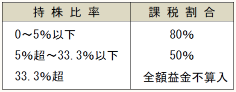 政府は、法人税率引下げの財源として、受取配当についての課税割合を次のように改正しました。