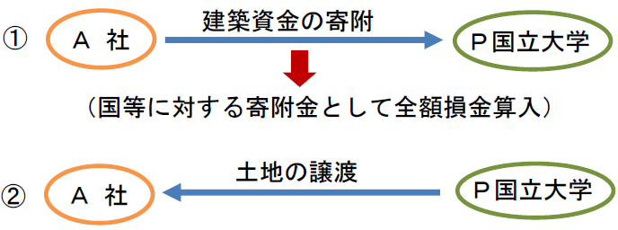 ② ①とは別に、A社はP国立大学から土地の譲渡を受けています。