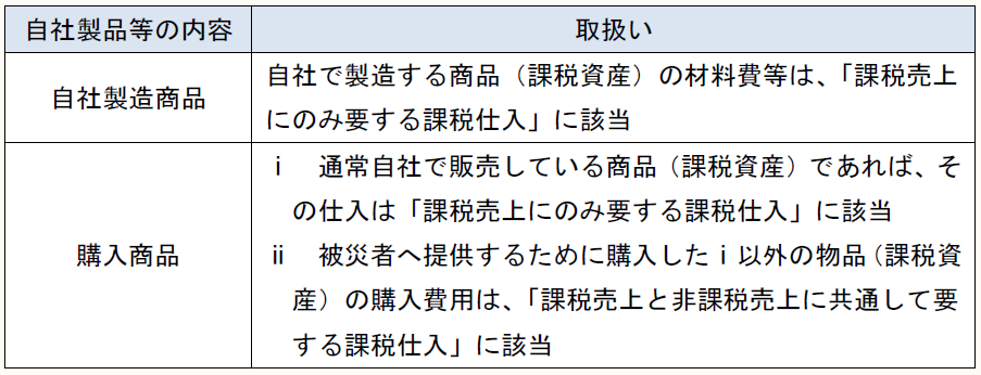 (※) 自社製品等の提供時に要した関連費用(被災地までの旅費や宿泊費等)に係る課税仕入は、「課税売上と非課税売上に共通して要する課税仕入」に該当する。