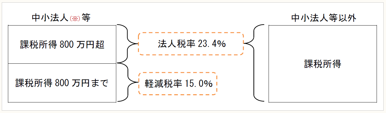 中小法人等以外の法人の課税所得や、中小法人等において800万円を超える課税所得に適用される法人税率は、平成27年度税制改正、平成28年度税制改正と連続して引き下げられており、平成29年3月期決算申告においては23.4%が適用されていた。平成30年3月31日までに開始する事業年度については23.4%が適用されるため、平成30年3月期決算申告においても23.4%が適用されることになる。
