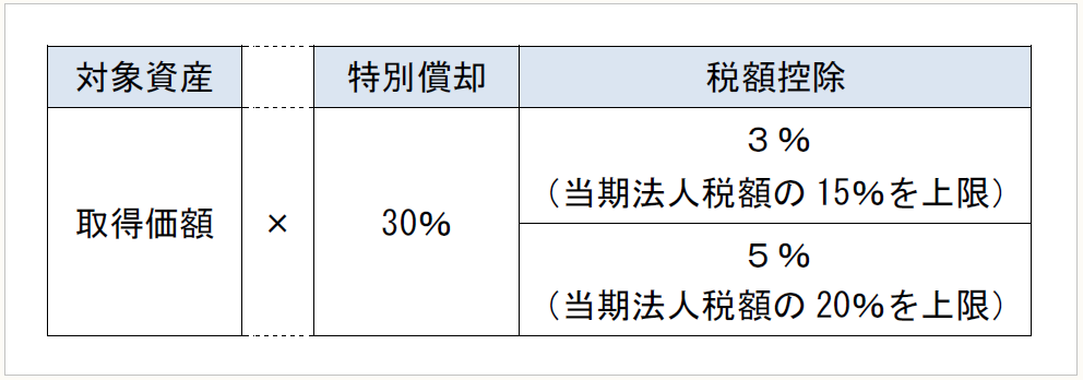 対象資産を事業供用した事業年度において、30%の特別償却又は3%(ないし5%)の税額控除を選択適用できる。