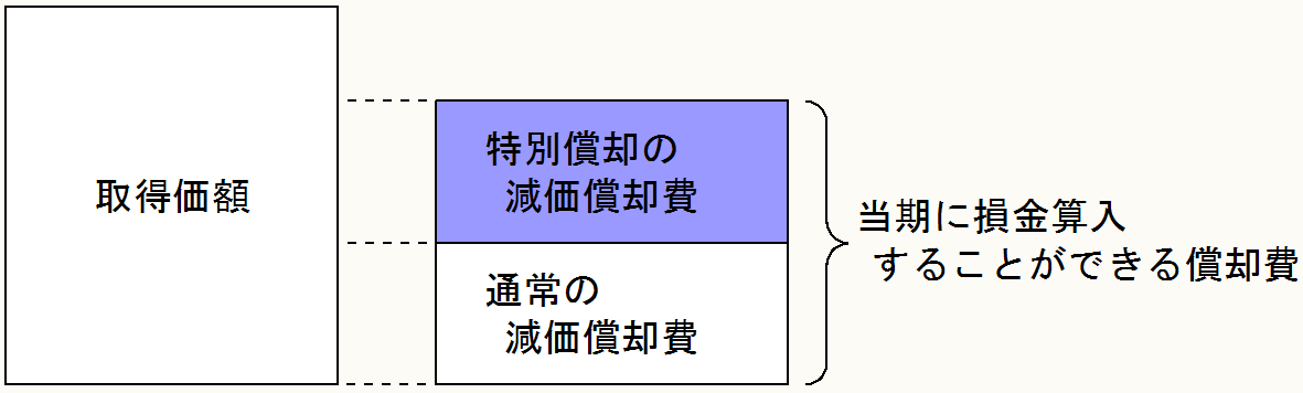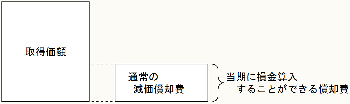 (※) (ロ)の一定額が「通常の減価償却費」であるときは、結果的に取得価額の全額が償却(即時償却)できる。