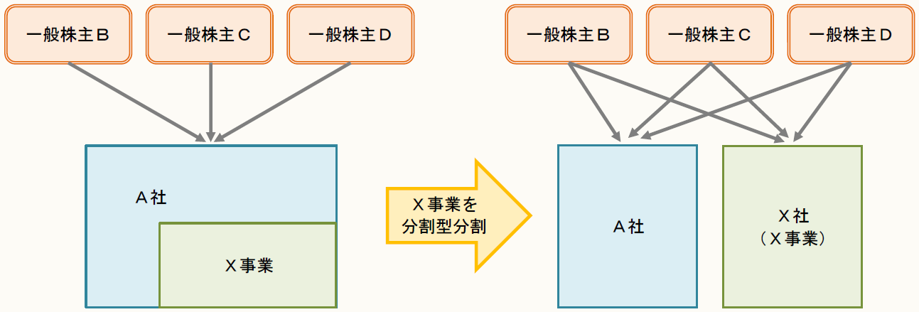 (※1) 分割型分割とは、会社分割で承継会社が、承継する事業の対価として株式を、会社分割を行う会社の株主に割り当てるものをいう。