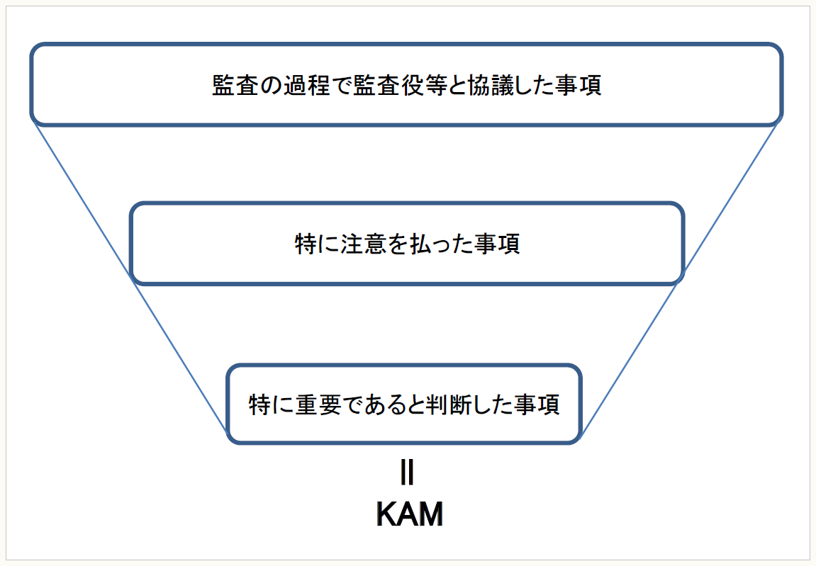 これらの公表により、「監査上の主要な検討事項(Key Audit Matters:KAM)」が導入された。KAMとは、「監査の過程で監査役等と協議した事項の中から特に注意を払った事項を決定した上で、その中からさらに、当年度の財務諸表の監査において、職業的専門家として特に重要であると判断した事項」をいう(監査基準 第四 報告基準七 監査上の主要な検討事項)。