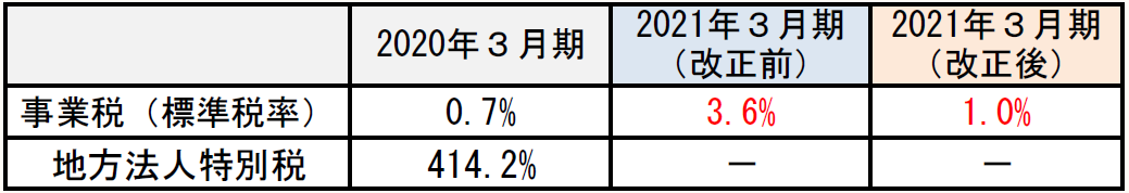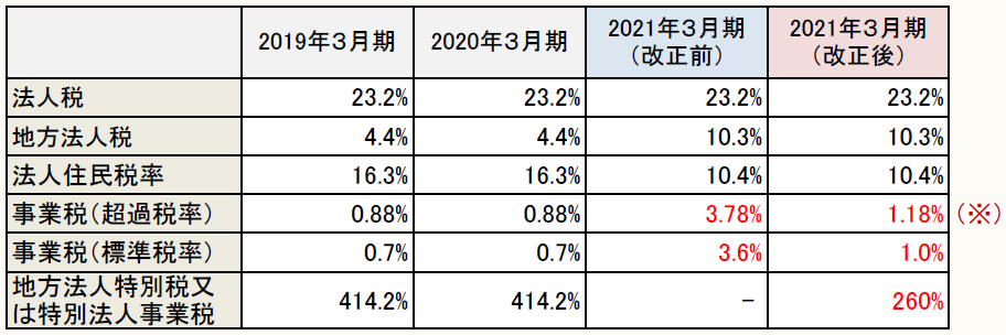 また、資本金1億円超の普通法人の所得割の制限税率は、標準税率の1.2倍から1.7倍に引き上げられる。