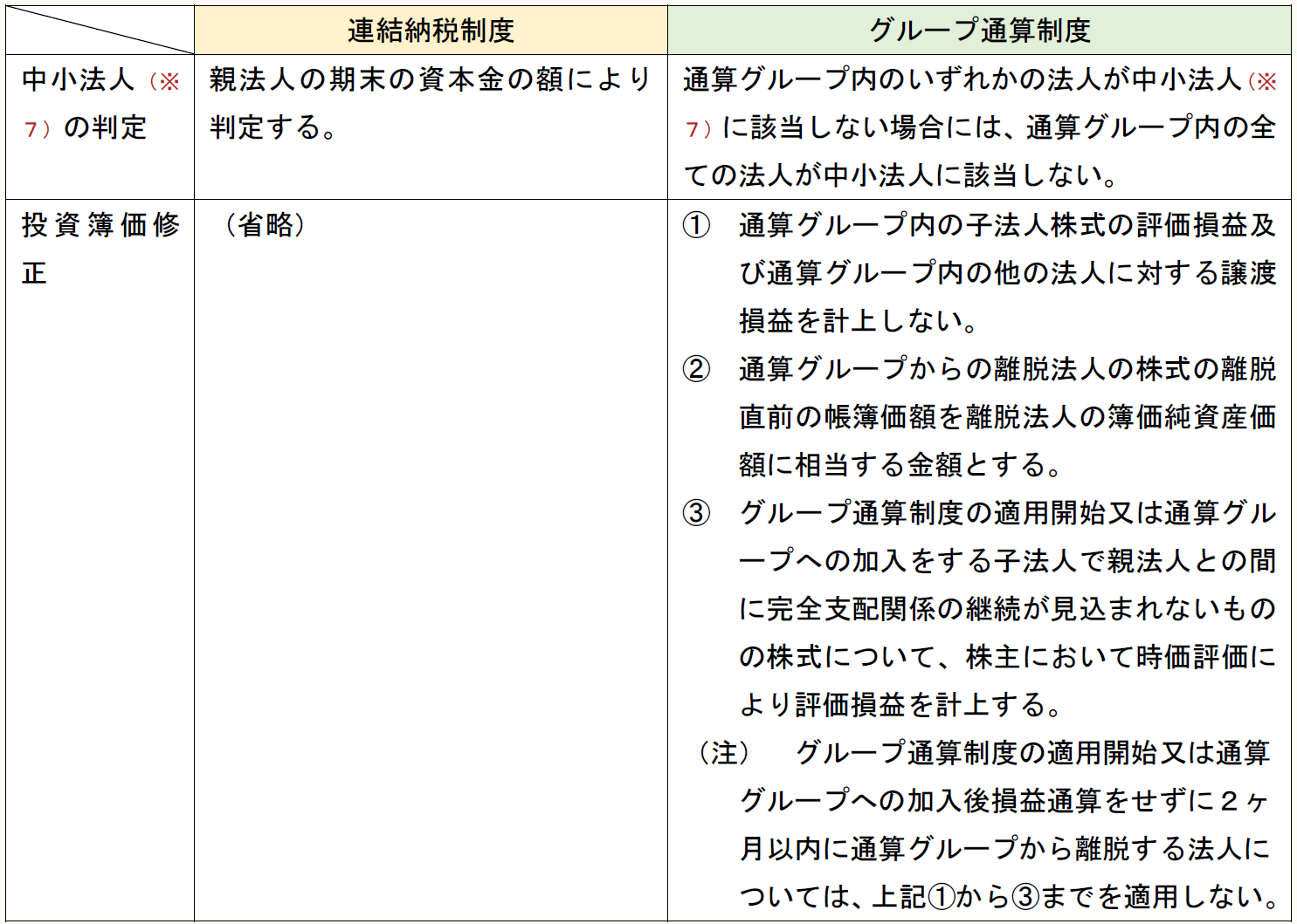 その他の連結納税制度とグループ通算制度における相違点は、以下のとおりである。