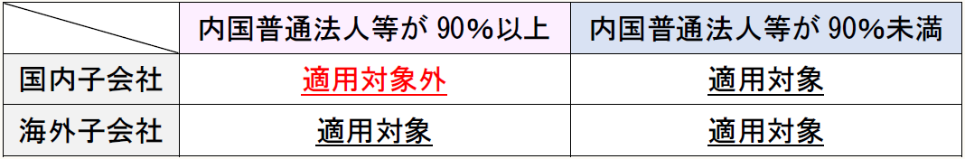 ① 内国普通法人である特定関係子法人の設立日から特定支配関係発生日(法人との間に特定支配関係を有することとなった日)までの間において、その発行済株式の総数等の90%以上を内国普通法人等又は居住者が有する場合の対象配当金額