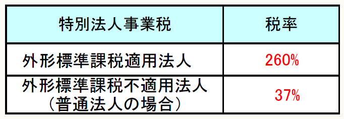 また、特別法人事業税は国税であるが、申告納付は法人事業税と併せて行う。そして、特別法人事業税の課税標準は法人事業税額(標準税率により計算された所得割額)である。