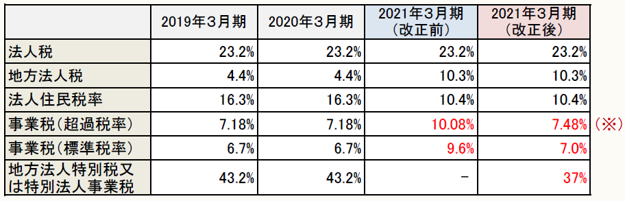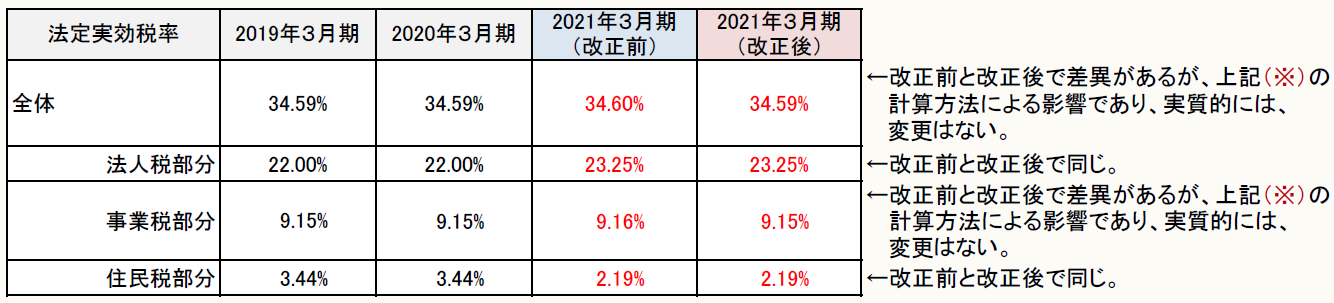 (注) なお、今後、各地方公共団体で超過税率が改正された場合、法定実効税率が変わる可能性がある。