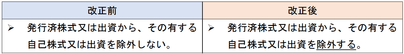 また、大規模法人の判定にあたっての自己株式の取扱いも改正されている。