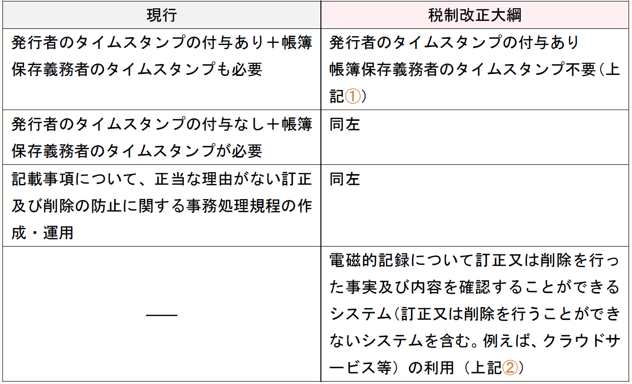 ② 電磁的記録について訂正又は削除を行った事実及び内容を確認することができるシステム(訂正又は削除を行うことができないシステムを含む)において、その電磁的記録の授受及び保存を行う方法
