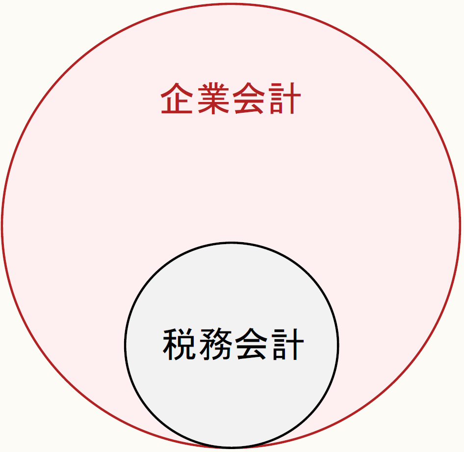 これに対して、数ある会計基準を全面的に適用することを“企業会計”と呼んでいます。範囲でいうと、「企業会計 > 税務会計」という関係性です。