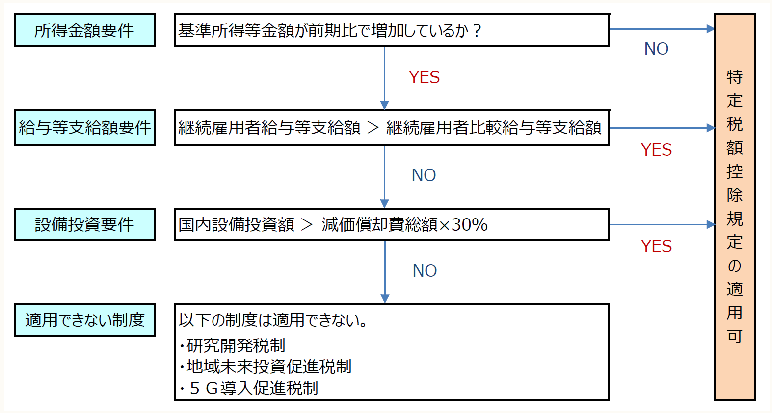 上記の改正の結果、特定税額控除規定の適用要件の判断は、以下のように行われる。