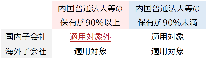 他の法人(国内普通法人に限る)の設立日から特定支配日(法人との間に特定支配関係を有することとなった日)までの間において、その発行済株式の総数等の90%以上を内国普通法人等が有する場合