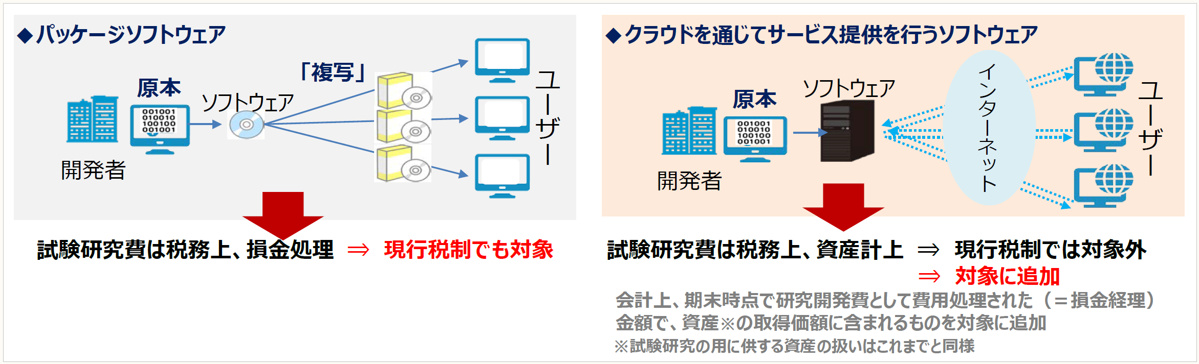 試験研究費のうち、研究開発費として損金経理をした金額で非試験研究用資産(※)の取得価額に含まれるものも試験研究費の範囲に加える。これにより、クラウド環境で提供されるソフトウェアなどの試験研究費が研究開発税制の対象になる。
