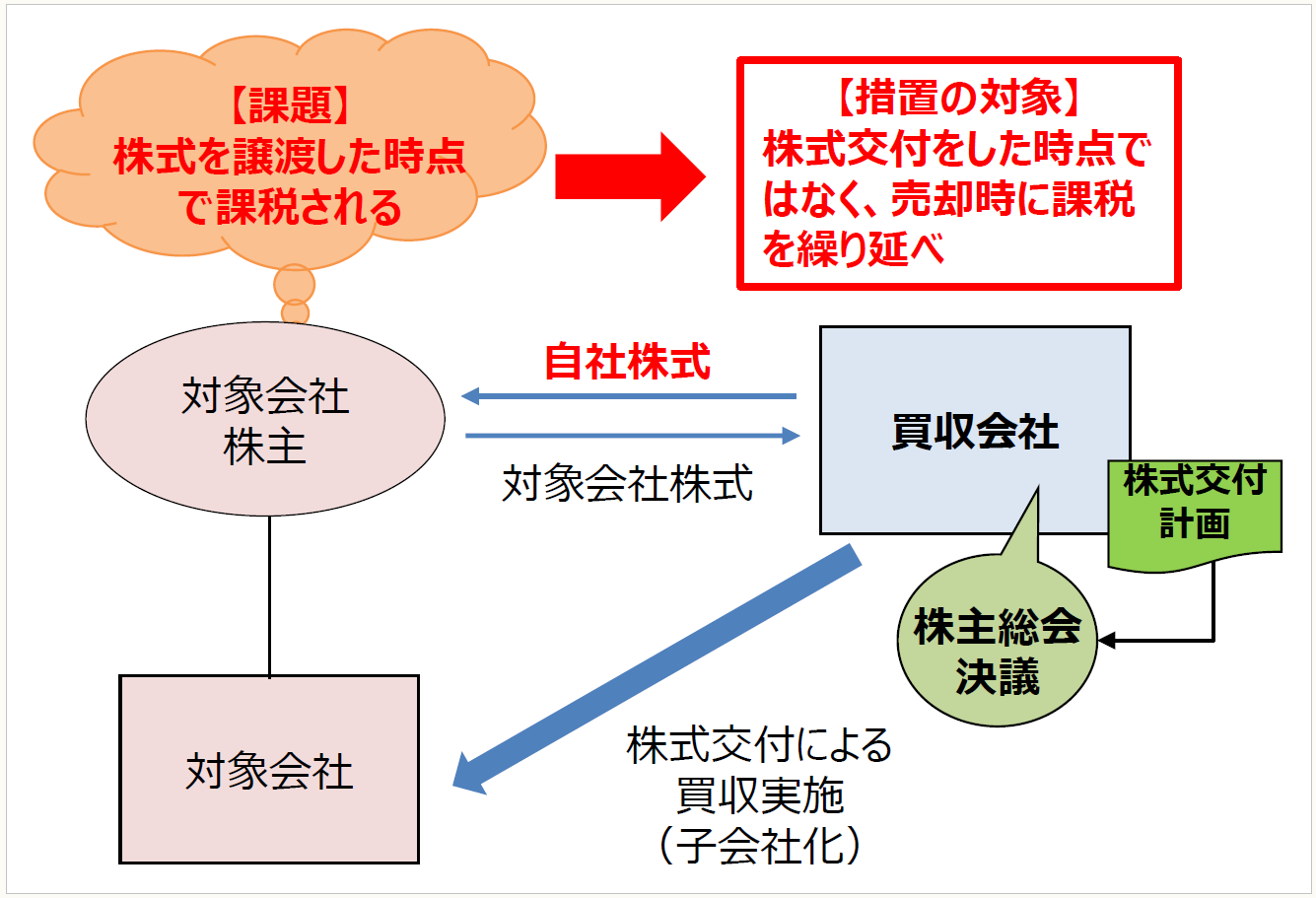 会社法改正により、株式交付制度が創設されたため、この制度の利用を促進するために、新たな措置が設けられている。