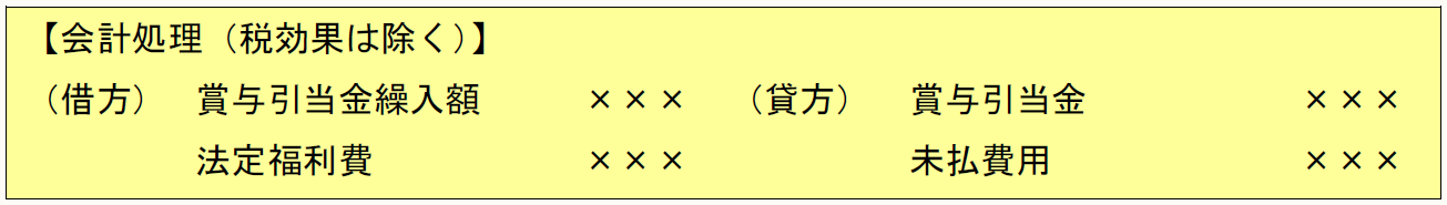 また、賞与に係る社会保険料等の会社負担分も賞与が支給されれば発生する。そして、賞与引当金を見積ることができれば、社会保険料等の金額も合理的に見積ることができるため、賞与引当金の計上と同時に計上する必要がある。