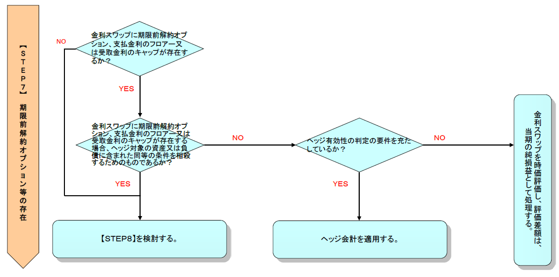 金利スワップに期限前解約オプション、支払金利のフロアー又は受取金利のキャップが存在する場合、以下を検討する。存在しない場合には、【STEP8】を検討する。