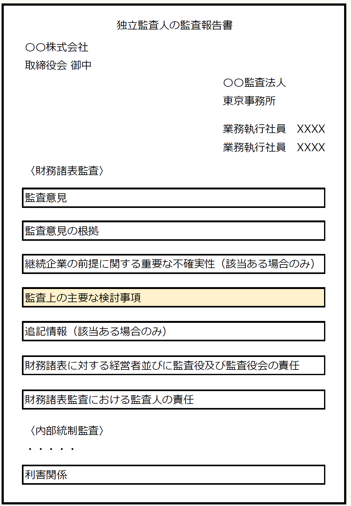 監査人は、KAMについて、監査報告書の「監査上の主要な検討事項」の区分の冒頭に以下を記載する(監基報701.10)。
