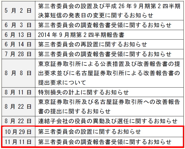 〔適時開示(不正発覚)〕
