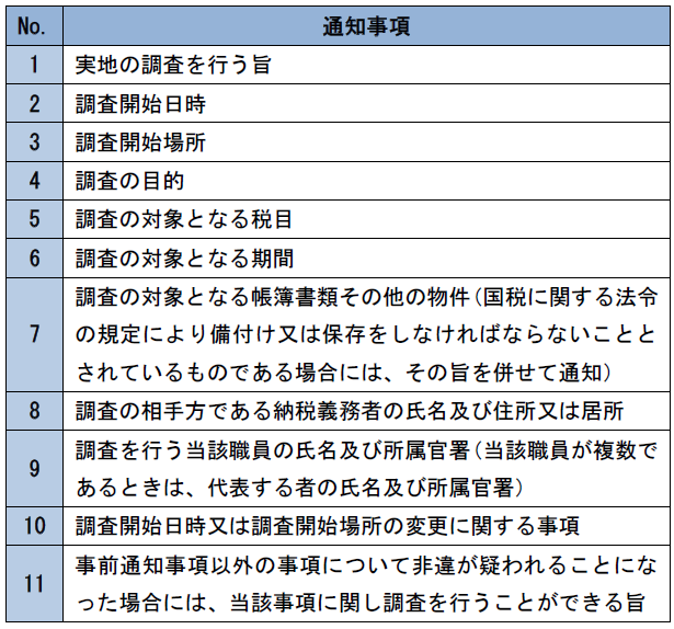 表1のうちNo.5からNo.8は、調査の範囲を明確にする上で重要な項目であり、税務署から電話で事前通知があった場合、正確に書き留めておくと、後日トラブルになった際に役に立つ。事務運営指針では、「通知事項が正確に伝わるよう分かりやすく丁寧な通知を行うよう努める。」と指示している(第2章2(1))。