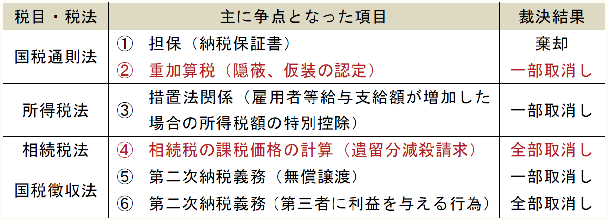 今回の公表裁決では、6件のうち5件が国税不服審判所によって、原処分庁の課税処分等の全部又は一部が取り消され、棄却は1件のみとなっている。