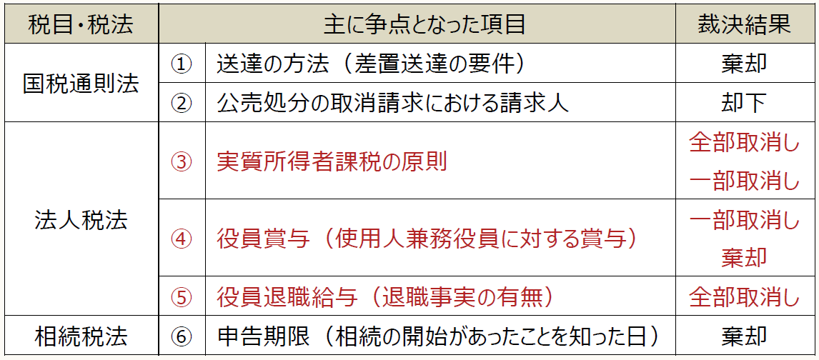 なお、いずれの裁決も複数の争点があるが、中心的な争点に絞っていることを、あらかじめお断りしておく。