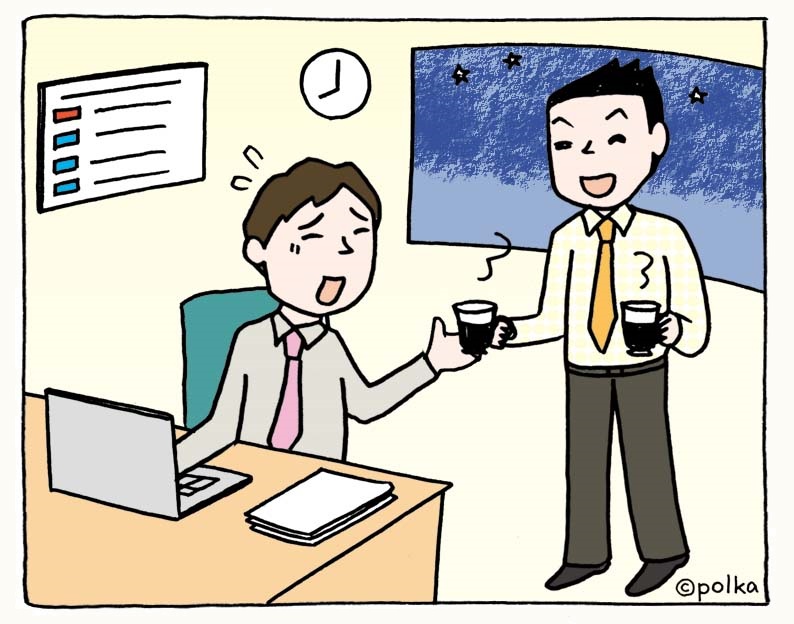 桜井の2年先輩の藤原が給湯室から2人分のコーヒー持ってきて桜井を労う。コーヒーは夕方淹れたものらしい。数時間保温され続けたことで生じる独特の匂いが鼻につく。