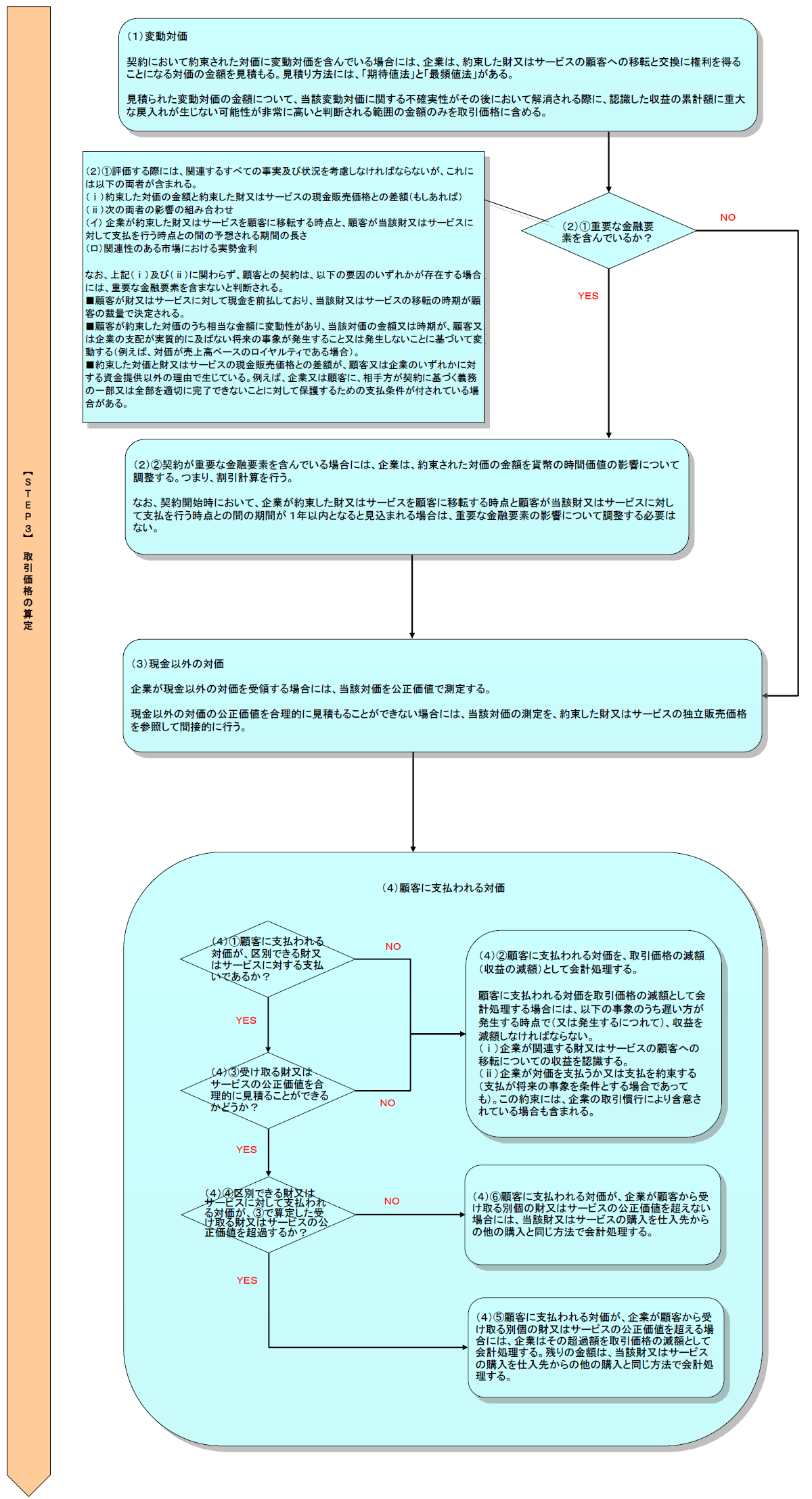 重要な金融要素を含んでいると評価された場合、②を検討する。含んでいないと評価された場合、(3)を検討する。