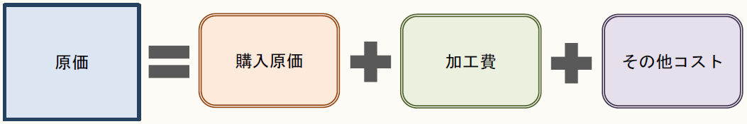 「原価というと、さっき勉強した、購入原価と加工費とその他コストの合計で求める方法ですね。」