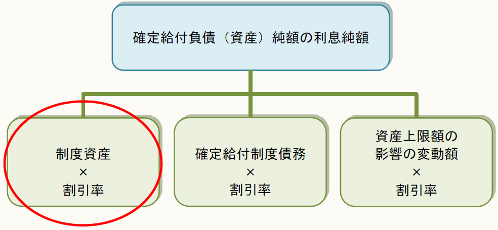 「ここで言う制度資産に係る収益は、もちろんお前の言う利息や配当等が基本だが、それらの収益から、制度資産に割引率を乗じた額、それから制度資産の運用管理に係る費用や制度自体の未払税金を控除した金額のことを指しているんだ。」