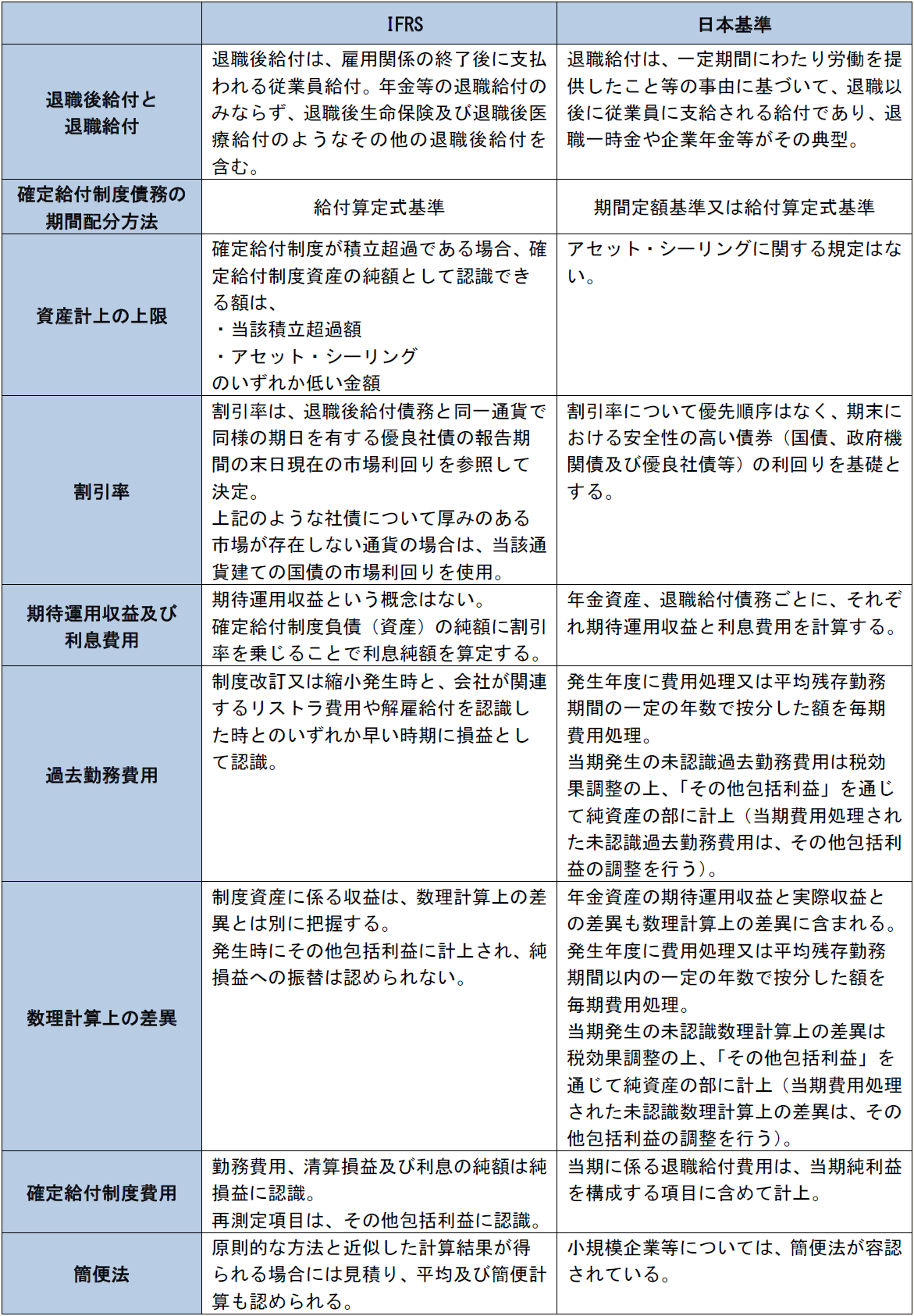 「うーん。退職給付って数年前に日本基準が改訂されてから、IFRSとほとんど同じじゃなかったかな?」