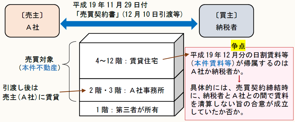 納税者は、A社との間で中古賃貸マンションを購入する旨の売買契約を締結した。