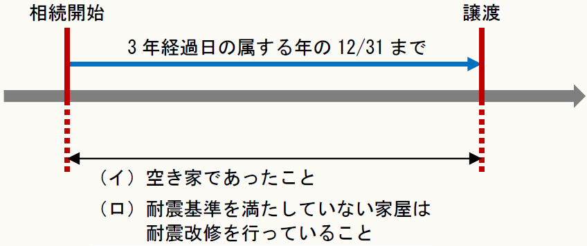 (ロ) 譲渡時において、現行の建築基準法の耐震基準に適合していること(相続時に現行の耐震基準に適合していない場合には、耐震改修を行ってから譲渡すること)
