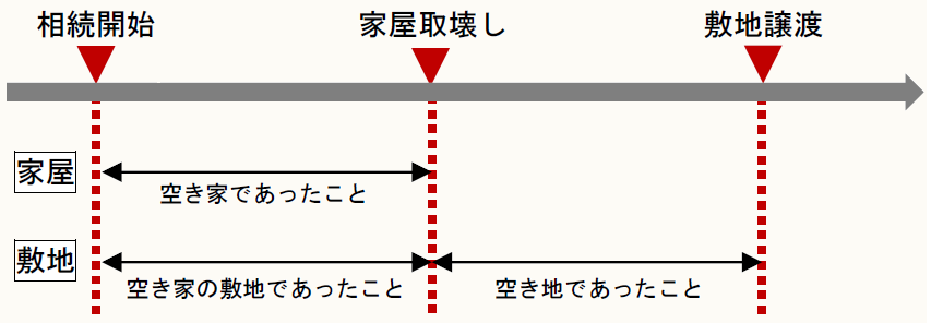 (ロ) 敷地は、相続時から譲渡時まで、事業の用、貸付けの用又は居住の用に供されていたことがなく、家屋を取壊し等した後譲渡時まで建物等の敷地の用に供されていたことがないこと(空き家の敷地又は空き地であったこと)
