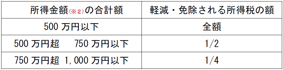 所得税の軽減免除の適用は、被災した年の所得金額の合計額が1,000万円以下の場合に限られる。