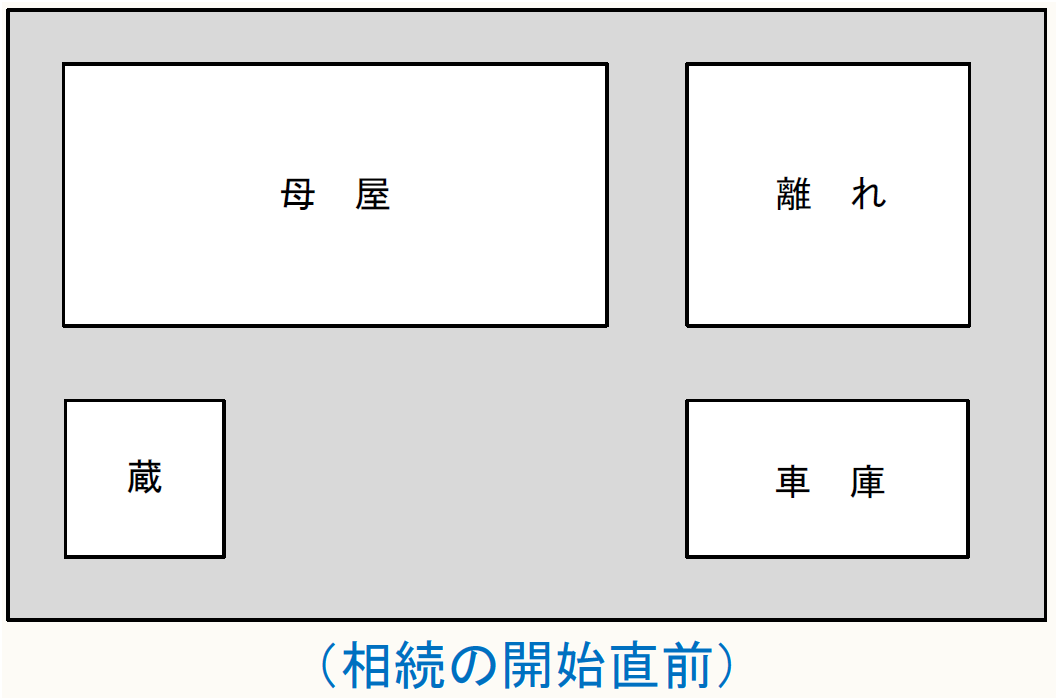 Xは、昨年6月に死亡した父親の居住用家屋等(昭和56年5月31日以前に建築)及びその敷地を相続により取得しました。相続の開始の直前において、父親は、その母屋、離れ、蔵、車庫を一体として居住の用に供し、1人で住んでいました。
