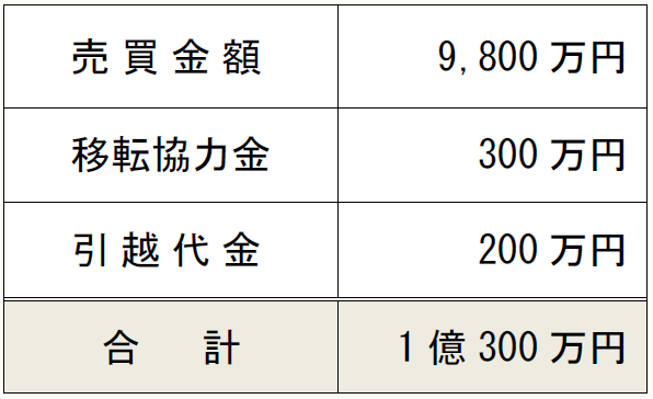 なお、Xは、売買金額9,800万円、移転協力金300万円、引越代金200万円として売却代金を受領しました。