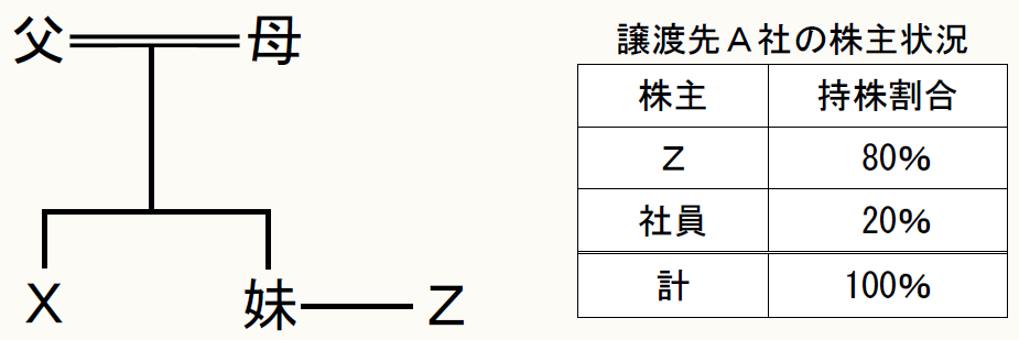 売却先のA社は、Xの妹の夫Zが経営する会社(Zの持株割合が80%)です。