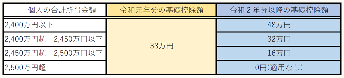 【図表2】令和元年分と令和2年分以降の基礎控除額